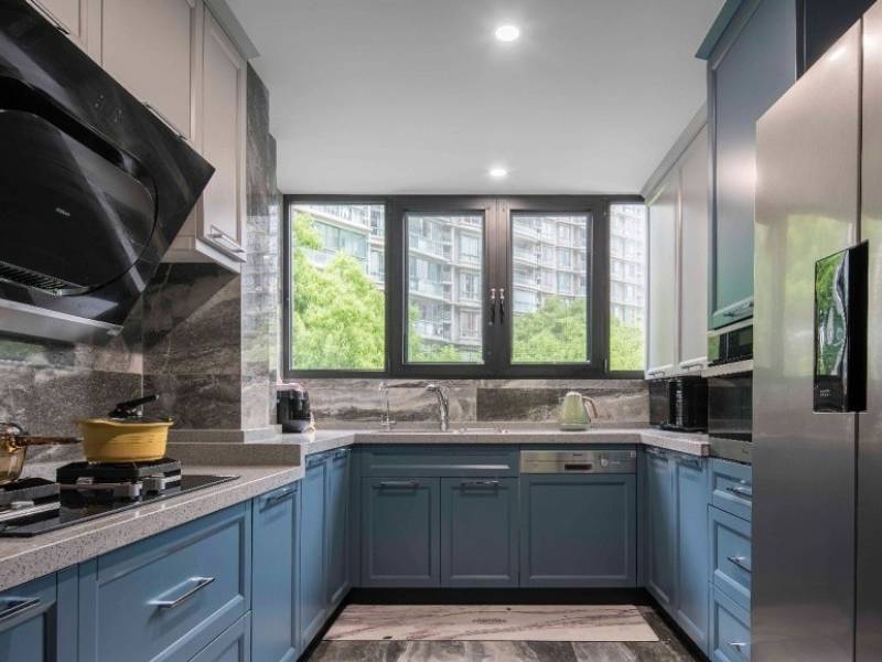 家用厨房台面材质最好还是用石英石或人造石,石英石有其他装饰材料无法比拟的耐磨、耐压、耐高温、抗腐蚀、防渗透等特性,比较耐脏,污渍不会渗透,也很好打理。花岗岩和不锈钢也可以,但是不要用天然大理石,虽然大理石看起来结实耐用,实际上耐污力并不强,如果滴上酱油之类的颜色重的液体,很容易渗入纹理,很难清洁。